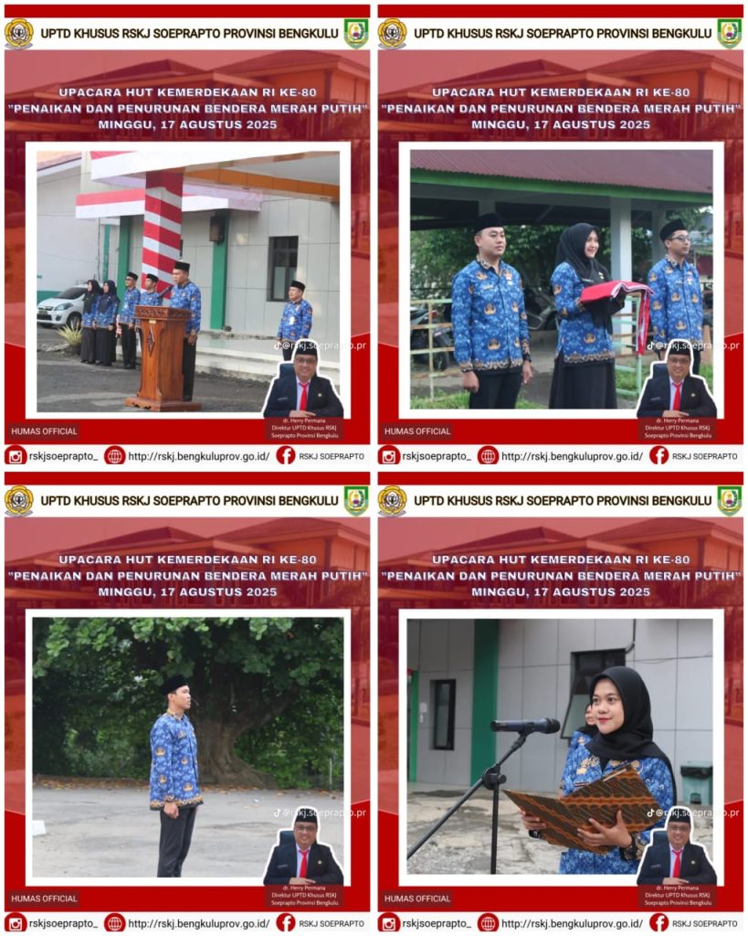 Peringatan HUT RI ke-80 ini menjadi momen refleksi dan motivasi bagi seluruh civitas RSKJ Soeprapto untuk terus berkontribusi dalam pembangunan bangsa melalui pelayanan kesehatan yang humanis dan profesional.
