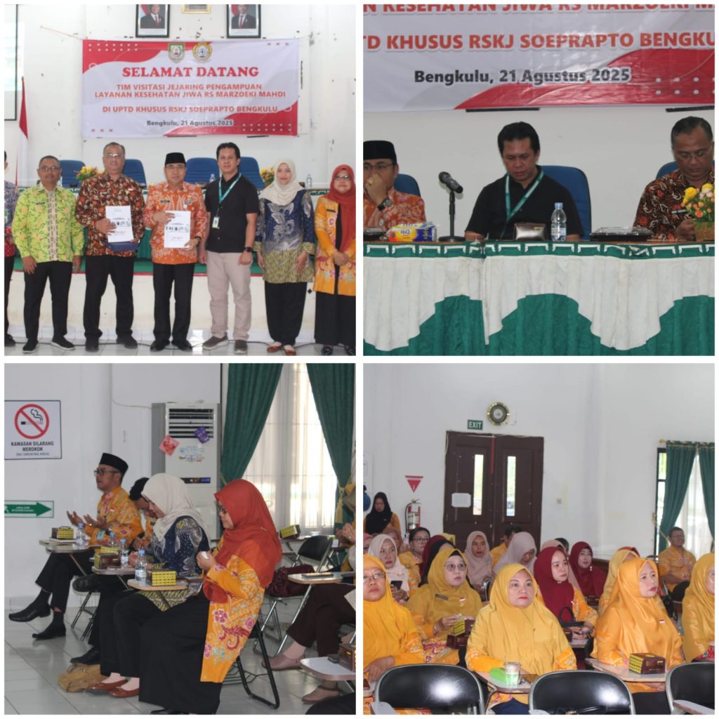 Bengkulu, 21 Agustus 2025 – UPTD Khusus Rumah Sakit Khusus Jiwa (RSKJ) Soeprapto Provinsi Bengkulu menerima kunjungan visitasi dari tim jejaring pengampuan layanan kesehatan jiwa Rumah Sakit Marzoeki Mahdi, Bogor, pada Kamis (21/08). Kegiatan ini merupakan bagian dari upaya memperkuat sistem jejaring pengampuan dalam layanan kesehatan jiwa di Indonesia.